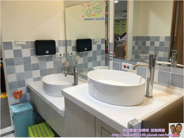 既然是親子遊戲屋那一定要有親子的配備~這裡是哺乳室區旁的洗手台兼飲水機,它們的飲水機設備好先進,這也是虎龍麻第一次看過這種用水龍頭式的冷熱飲皆有的飲機耶~好酷!連水杯都有貼心的幫你準備了~