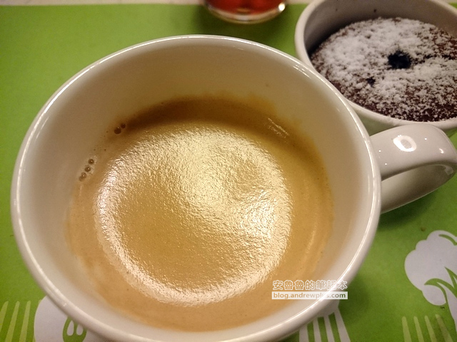 ▼吃到七八分飽的時候,就是甜點時間啦~這一杯是濃美式咖啡~上面厚厚的一層咖啡油脂真是不可思議,美式應該不會有這一層的! 但這一層卻是咖啡好喝的美味啊~