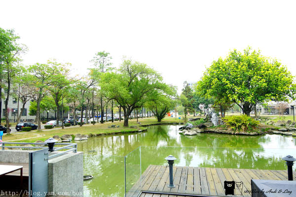 卡璐佶咖啡前是雲科大的"雲那裡荷花池",池裡還有鴨子在戲水,