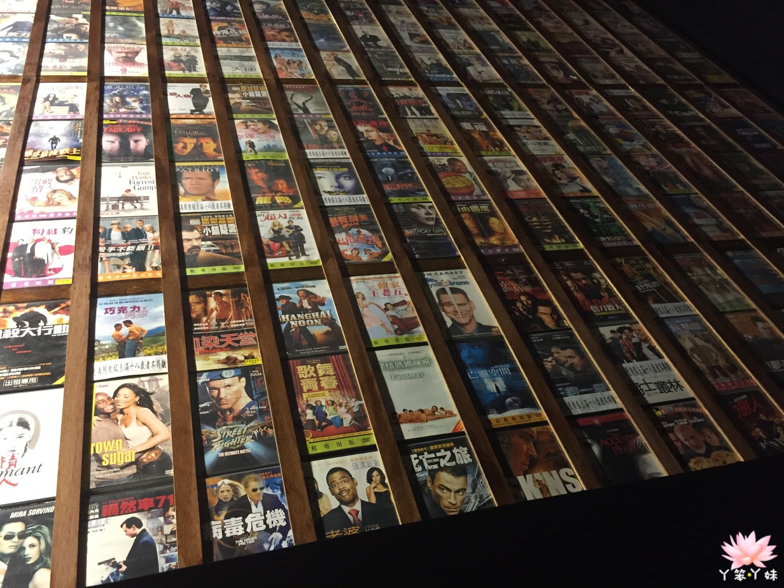 室內的天花板與牆壁用了滿滿的DVD盒子做為裝飾,讓Y笨回憶起學生時期,常去去百視達/Hollywood 租DVD的年代。很難想像DVD已經沒落許久,但卻在這裡又勾起那美好的租碟年代。