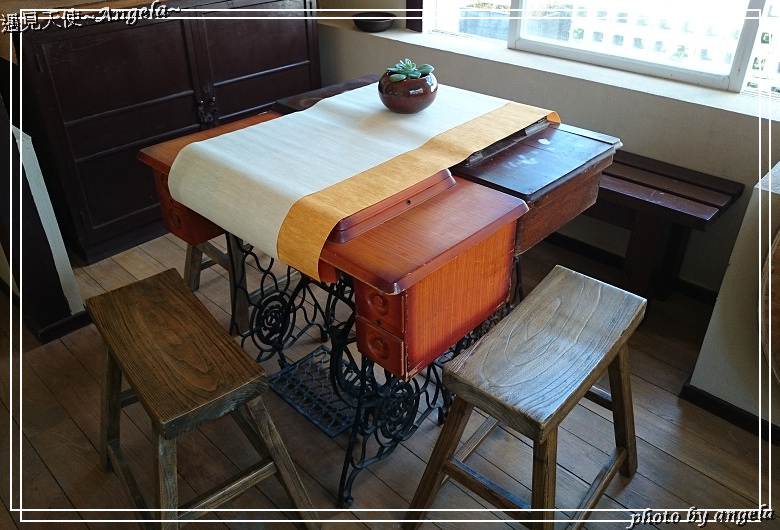 另一端還有這個老嬤時代的裁縫機桌子,簡單的擺設呈現出懷舊的巧思。