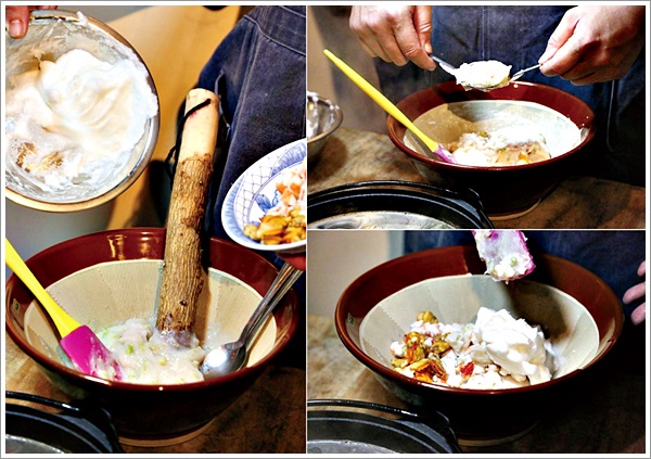 | | 接下來主廚在桌邊現做的魚漿泡芙(招待)也是超威!… 裡頭加上明蝦和赤嘴貝的魚漿泡芙用料完全不手軟… 而看著主廚料理的過程也真是一種享受… 畫面一整個就療癒系呀XDDD… |