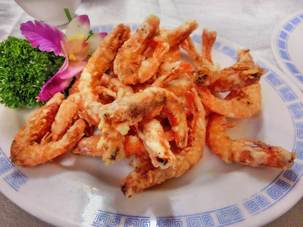 白蝦略裹太白粉後直接整隻下去油炸,胡椒鹹香酥脆到連頭帶殼都可以咬碎吞下,