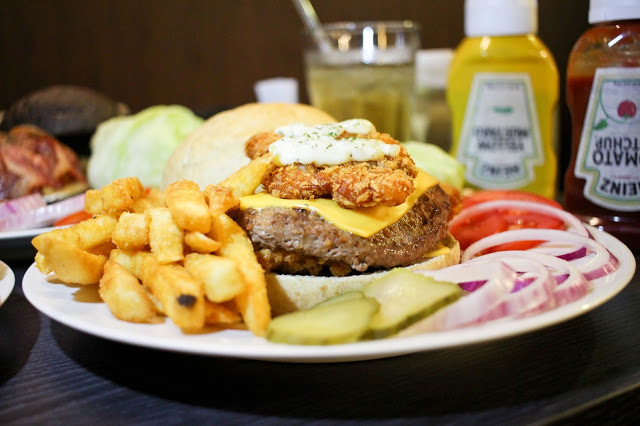 招牌豪華海陸堡中的牛肉是一般漢堡的牛肉不是手工牛肉,