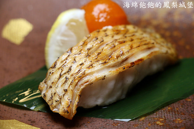 紅喉握壽司,使用炙燒手法,油脂遇熱後香氣誘人