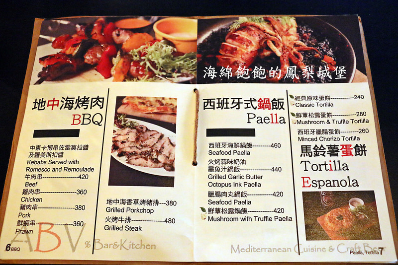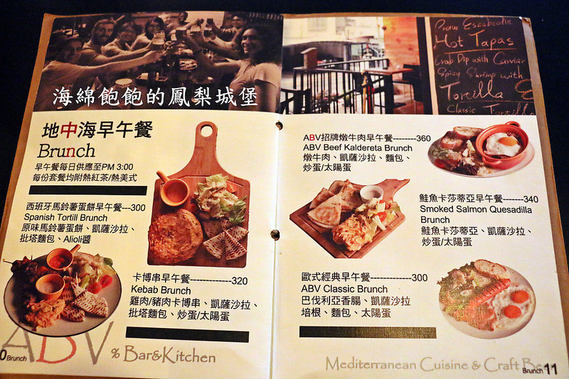 ABV Bar & Kitchen 啤酒餐廳的參考菜單