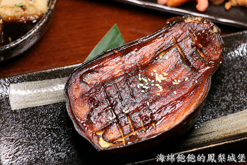 將茄子剖半,加上田樂醬,以味噌調製的醬汁