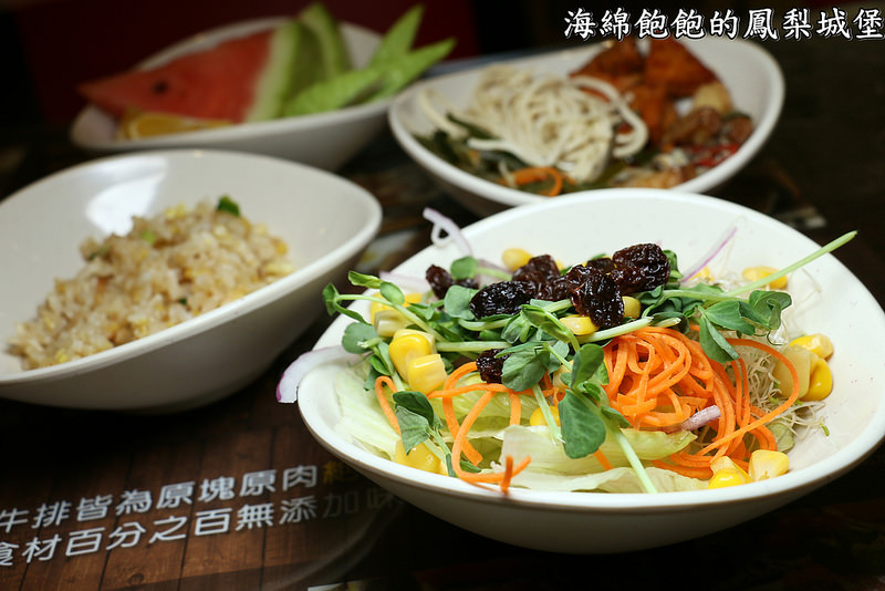 內用有自助沙拉吧,沙拉、小菜、炒飯、湯品、水果通通吃過飽