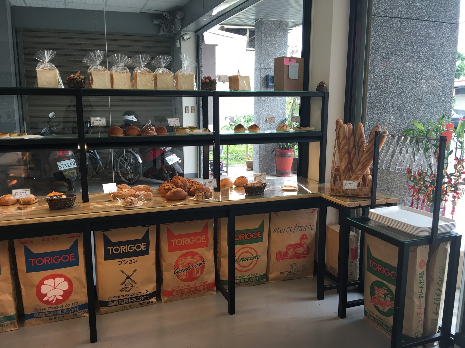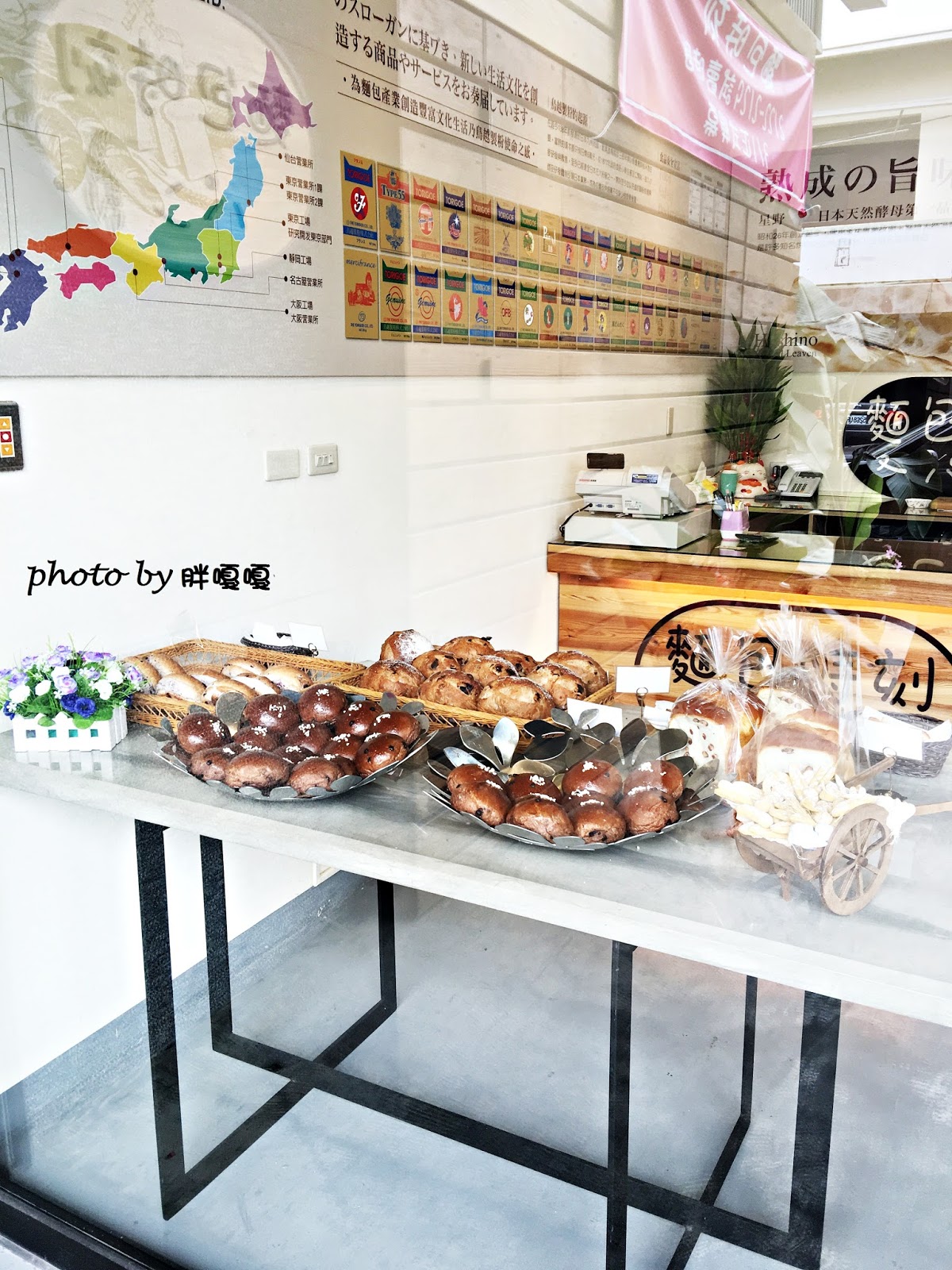 牆上說明著他們家的麵包是用日本的烏越製粉的麵粉製成