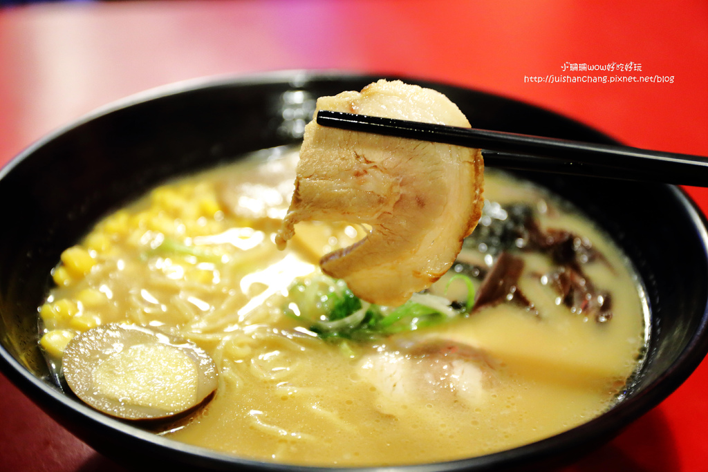 說回這碗拉麵,豚骨湯頭很純淨喝得出帶點膠質黏膩的濃郁感,但鹹度感覺調整得蠻接近台式口味,湯頭夠味又不過鹹,叉燒肉也超軟肉味十足