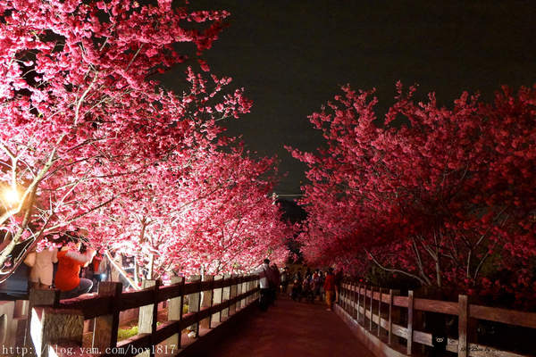泰安派出所櫻花,白天和夜晚都有許多人前往觀賞,