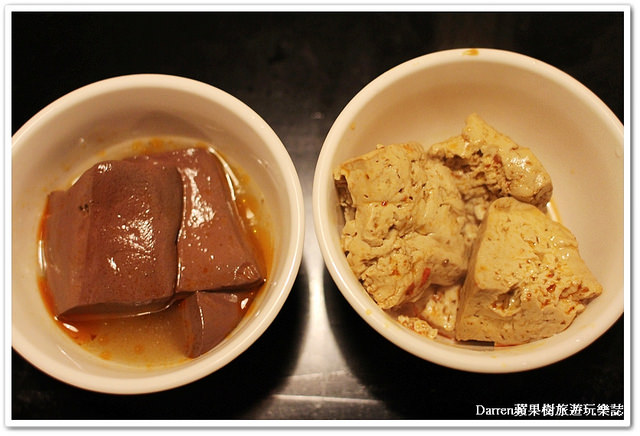 等待鍋物煮熟的時間可以先吃他們家的鴨血和滷豆腐,添上一碗白飯整個很下飯先墊胃