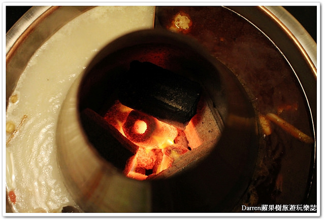 鍋具中間煙囪裡有炭火,不僅導熱速度超快而且炭火煮鍋物比起一般鍋具的爽度就不一樣