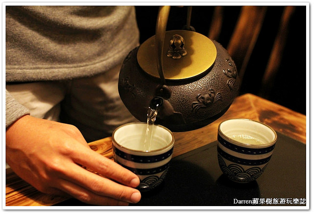入座點餐的同時店家一邊介紹一邊上熱茶,鐵壺奉上一杯熱茶喝起來很暖心,我點養生茶蠻好喝的