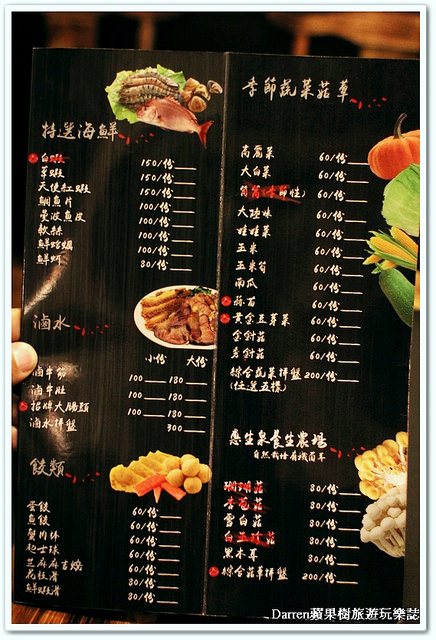 品項分類有肉品、手工丸子類、海鮮、滷水、餃類、蔬菜菇蕈等,價位60~200之間