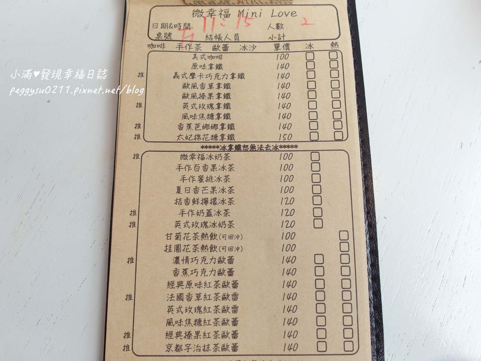 入座後,服務人員會送上一本有照片的菜單,還有照片中的點餐單