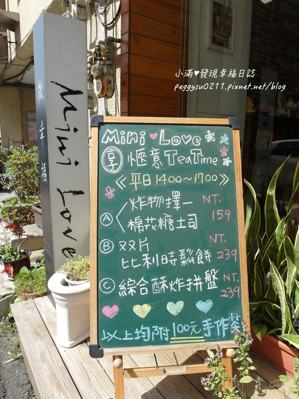 門口的黑板有推薦下午茶套餐!價位從159~239元,14:00~17:00才有噢~
