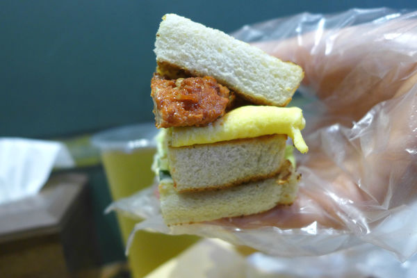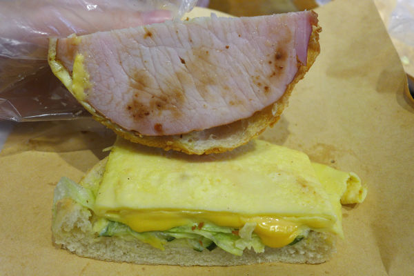 雖說是火腿起司蛋,不過高三孝使用的火腿比一般早餐店的再厚,