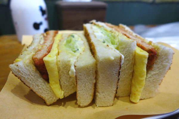 豬排很豪氣地橫跨在吐司和蛋的中間,這種大小厚度太令人滿意啦!!!!