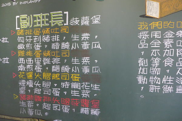 黑板上有高三孝的創意菜單,班長就是烤吐司的系列!!!!!