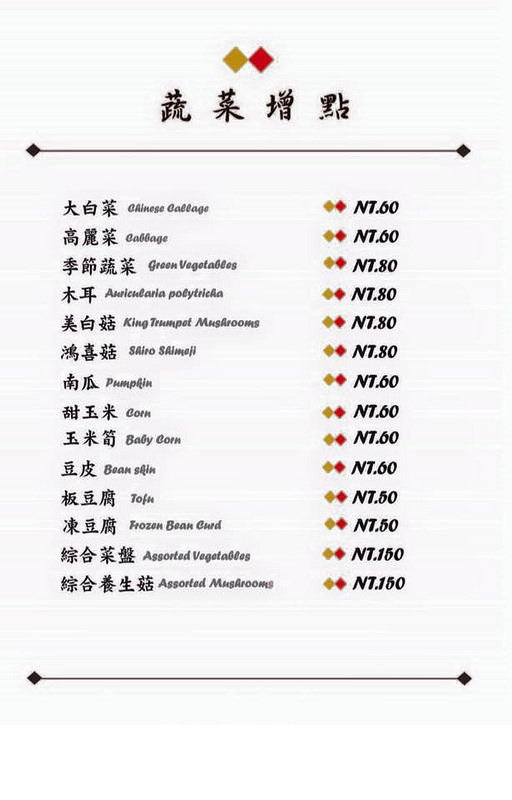 潘教授鍋物 參考菜單