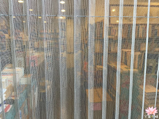 從大門紗窗看進去,滿滿的書櫃,很整齊的在有限的空間裡呈列著