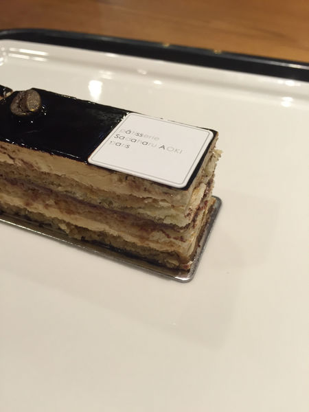 上層是巧克力與咖啡混合的巧克力,薄薄的一層,整口吃起來非常的細緻,巧克力也不會太甜,也沒有咖啡的苦味, 然後還有一顆灑泊金粉的咖啡豆