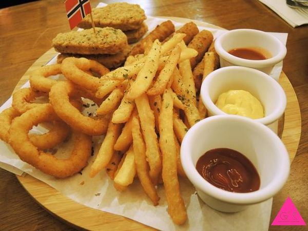 這款經典炸物拼盤裏頭含有熱騰騰的好吃薯條 洋蔥圈 雞柳 馬茲瑞拉起司條