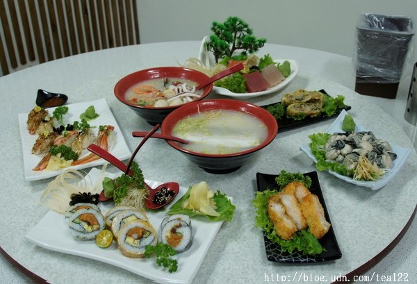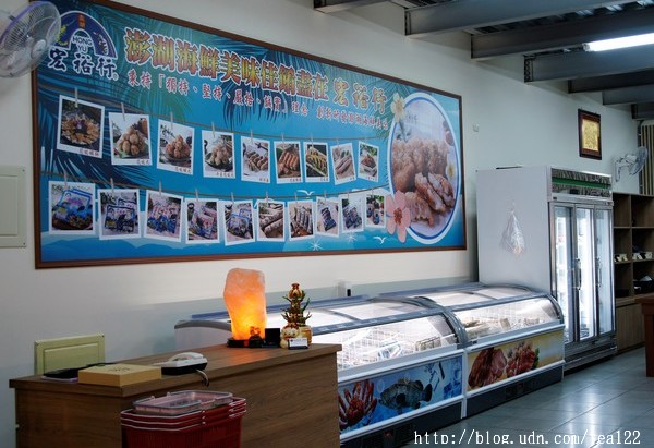 從外觀上看來,這是一間代售澎湖宏裕行花枝蝦排的店家,入內才知道,這裡別有洞天,整齊清爽的擺設,除了滿滿的新鮮海產及加工品供消費者選購,還有簡單的台式小吃及日式料理,簡單明瞭的說,就是老闆集結了「海鮮超市」、「現撈海產、活魚、活蝦」以及「海鮮粥、生魚片、東石和澎湖小吃」三種功效於一,一條龍的行銷方式,非常具有新潮思維的創舉。不但滿足一家人出外打牙祭的享樂,亦可方便家庭主婦順道購買海產回家料理,一次可以達到多種效能,省時省事的好構想。