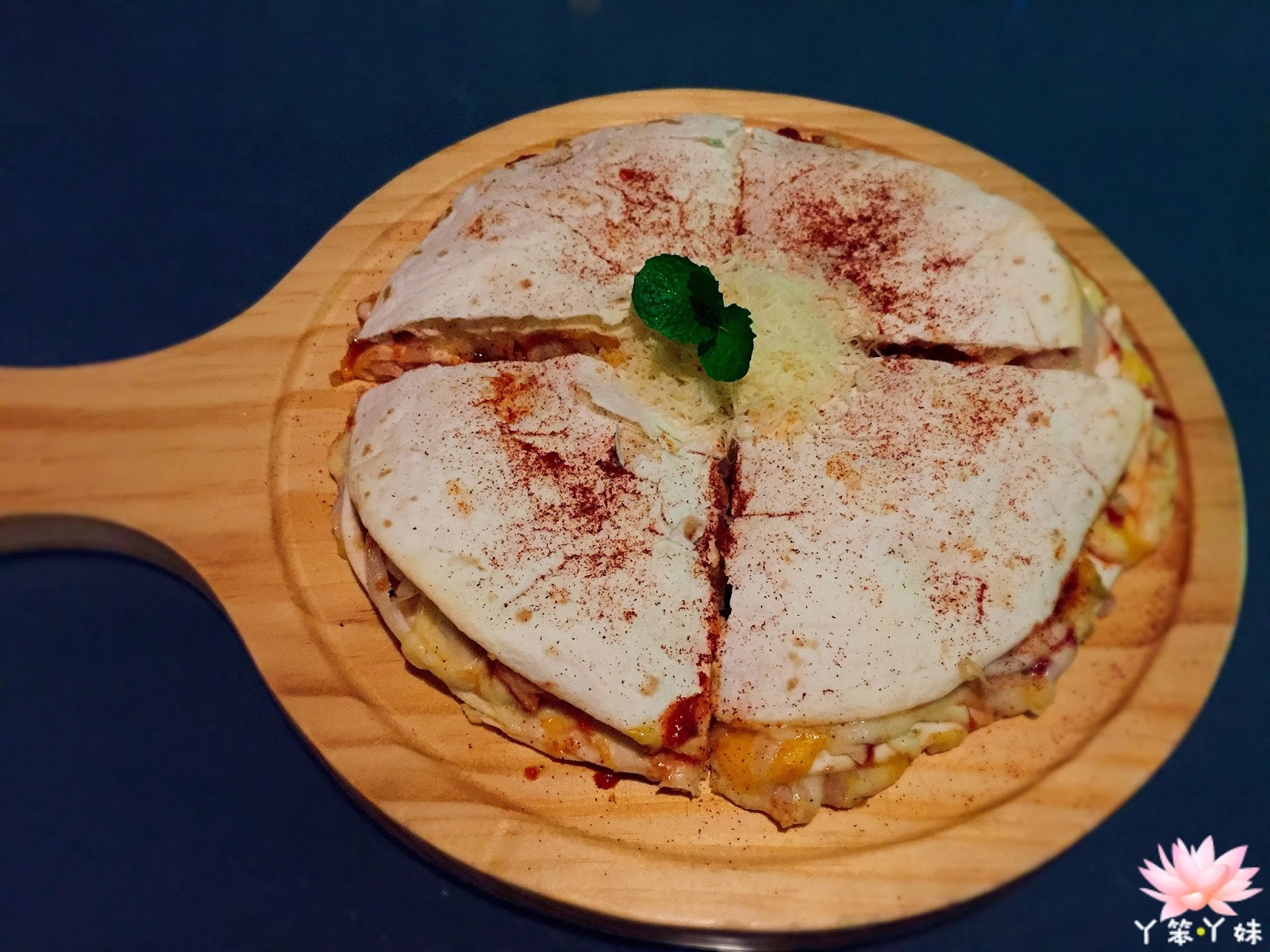 每日限量的「墨西哥起士餅Quesadilla 」,是由辛辣生洋蔥、酥脆餅皮以及濃濃起士香搭配而成,濃郁鹹香滋味,讓人意猶未盡。在歐美地區深受歡迎的墨西哥料理,基於調理方式簡單,在家也可以簡單做。將自己喜歡的食材放入,加上香濃濃厚的起司,就可端上桌。貝斯特請廚師根據墨西哥料理迎合台灣口味特製墨西哥玉米餅。煙燻雞肉與番茄片,洋蔥及醬料。很不錯的前菜選項之一。