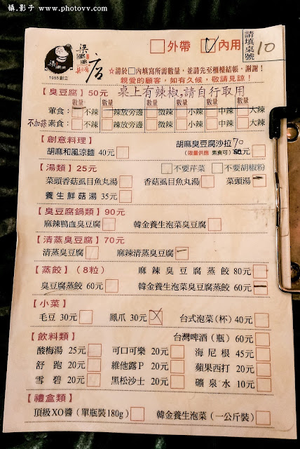 ↓附上菜單種類與價位。從菜單上看,除了臭豆腐外,連蒸餃內餡也是用臭豆腐做的,蠻特別的組合。