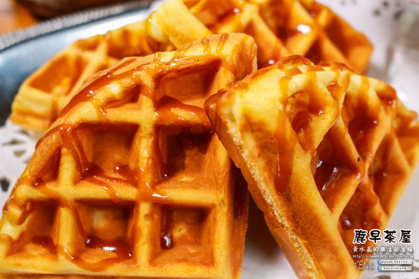 鬆餅四大塊都淋上了焦糖蘋果醬,可以直接食用,也可以沾食冰淇淋唷!