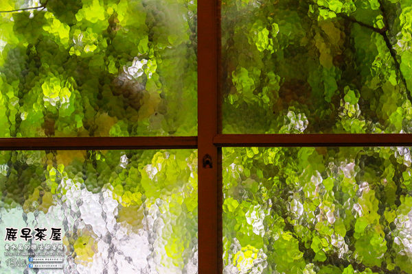 窗外是一片綠意,隔著毛玻璃,看起來像是一幅油畫呢!
