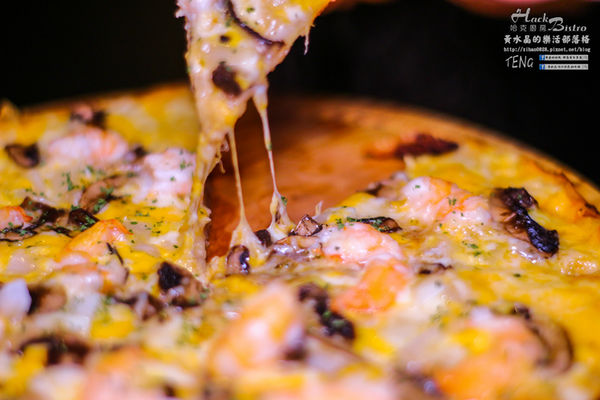 加上磨菇和鮮蝦擺滿了整個烤餅,每一口都是一場完美的演譯。