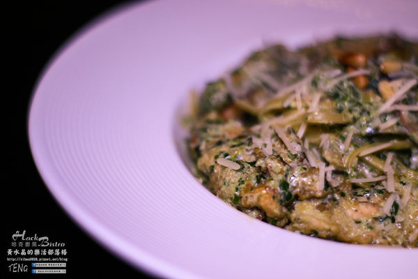 義大利麵也是滿滿的一大盤,青醬是店家用九層塔自製的唷!