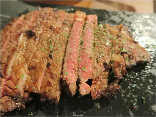 骰子牛排帶著些嚼勁,與焦香的外皮吃來,很享受肉香在口中散發的滋味。