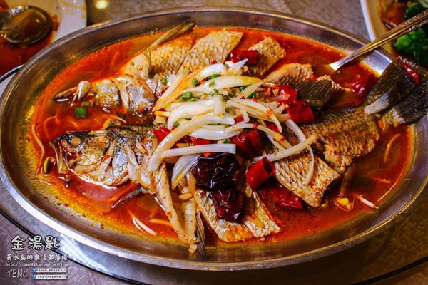 所以魚上來時,上面紅通通的辣椒還真嚇了大家一跳。