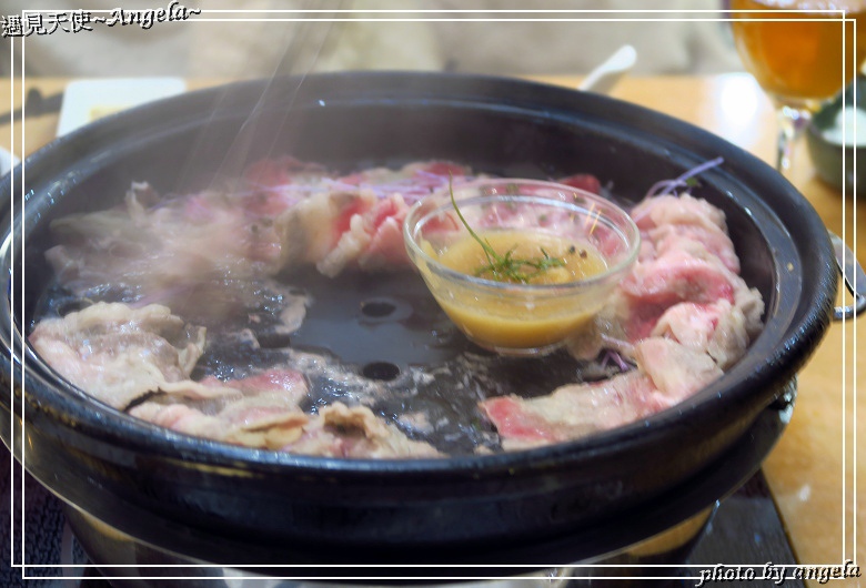 在蒸煮的同時,服務生會在一旁另外用燒爐煮食日式風味的壽喜燒牛肉。