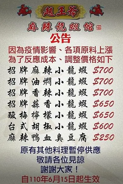 菜單選擇不多,只有兩種主餐,且龍蝦得事先預訂,
