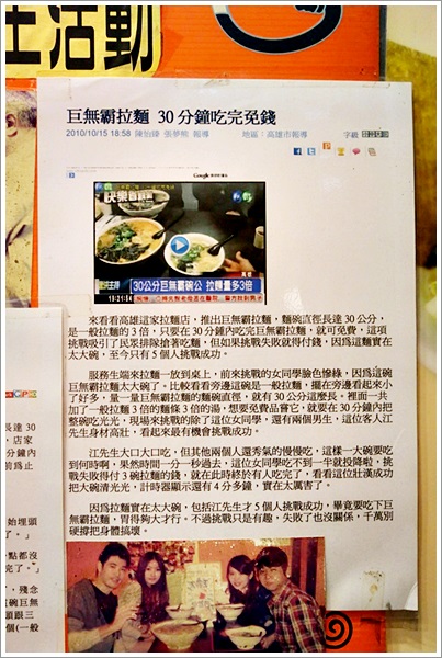 平價好吃的日本拉麵…還有各式日式小吃也好美味…還記得2014年7月31日高雄燃氣爆炸事件震驚了全台…當時的死傷人數非常多,一場氣爆炸碎了許多和樂的家庭…而其中有一位經營拉麵店的老闆王忠誠先生…在這場氣爆中失去了妻子和小兒子…王先生難過痛苦的心情經媒體報導後大家都知道了他的拉麵店…原本王老闆已經決定將拉麵店收起來…但想到還有大兒子跟員工的生計就決定再重新站起來…而台灣最美麗的風景就是「人」…在王老闆將拉麵店恢復營業後許多人都用行動來支持到店裡為老闆打氣…希望老闆能漸漸的重傷痛中走出來恢復到以往的笑容…於是乎,momo也趁著某次下高雄工作時前往用餐…一方面希望有機會能遇到老闆親口跟他說聲加油!…另一方面我也挺愛拉麵的,當然就不能錯過這美食囉…王老闆的拉麵店名叫「喜多日本拉麵」…在氣爆後不久重新開張時的時期還掛有一塊布條…布條上就寫著「揮別傷痛,重新開始」…如今布條雖已拿下,但大家也都知道了這就是王老闆的店家…在準備踏進店裡用餐時發現店門外有貼上許多海報…這時候才發現原來喜多日本拉麵的前身就是神座拉麵…一看到神座拉麵我整個就是大驚…因為momo我多年前曾經幫神座拉麵拍過一個大胃王比賽的採訪活動…所以對於神座拉麵可說是再熟悉不過…而且沒想到的是…沒想到的就是當年的照片居然會還在!!!!…而且還是被貼在拉麵店的大門口…我看到時真的是笑到一個差點煞氣XDDD…當時我手上還拿著大胃王挑戰的板子…完全就是女中豪傑一條漢子來著的呀…從照片泛黃又斑駁的程度看來就知道這已經是N年前拍的了…所謂凡走過必留下痕跡…真想不到多年前的一個小採訪會被保留到現在…回憶剎那間就像跑馬燈般的一幕幕在腦海中飛奔阿XDD…(好險當年拍的照片還算不錯,不然一整個就會很想死==IIII)…當年因為要幫朋友的忙所以才客串了一下參加者給電視台採訪…不過當天我的確也有吃就是,但是並沒有在30分鐘內吃完…陳momo我雖然愛吃貪吃又能吃,但也沒強到這種地步就是了XD…在門外歷經了一場多年前的回憶加大笑後總算是總進店裡來了…喜多拉麵的店裡用餐區非常寬廣…座位數也算相當的多,整體的環境也很日式…momo我前往時因為不是用餐高峰時間所以人潮就沒這麼多…因據說在老闆重新開幕的那段時間裡每天店裡都是人擠人的盛況…如今應沒當時的瘋狂人潮,但在中晚餐時期時生意也是很不錯低!…店內賣的拉