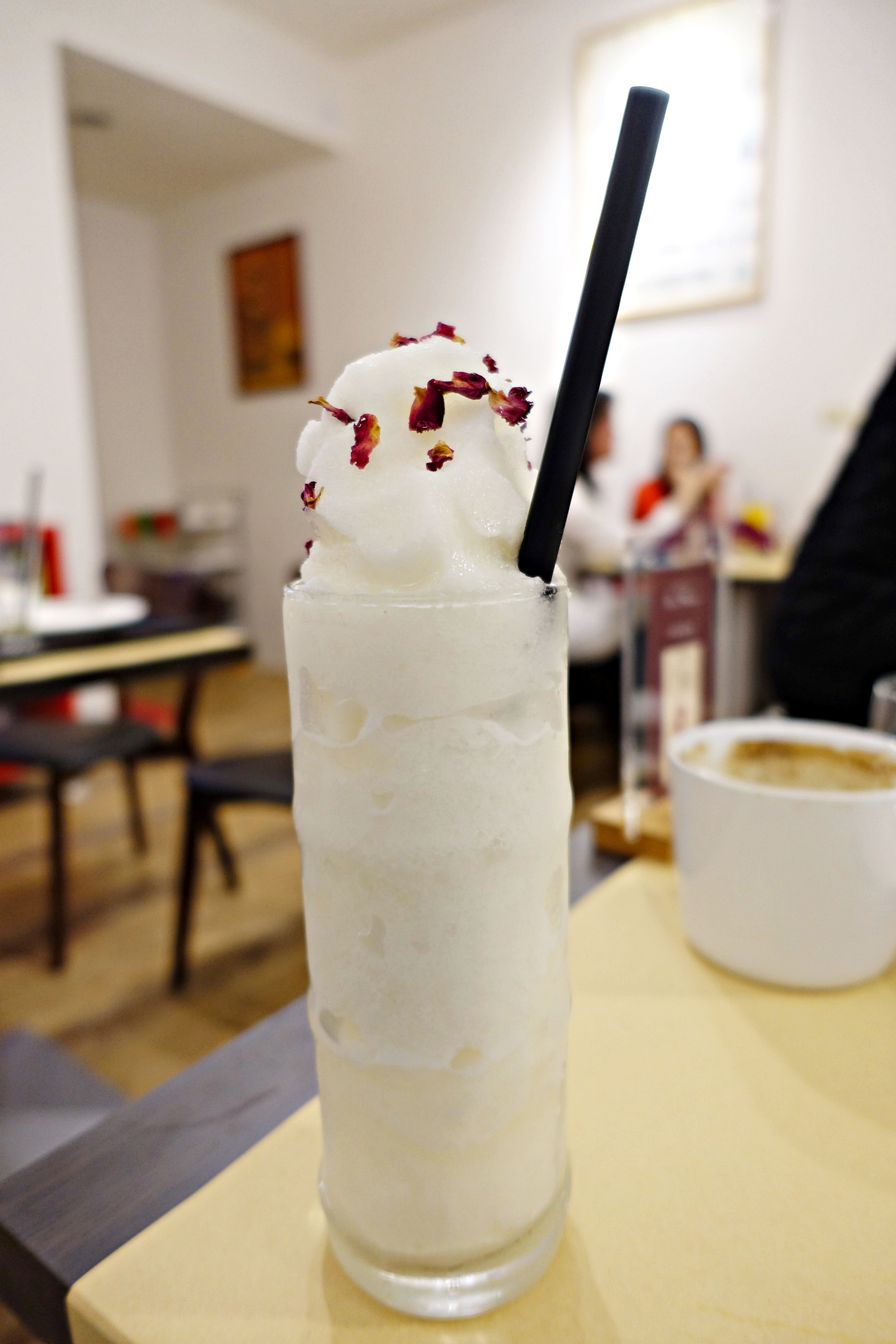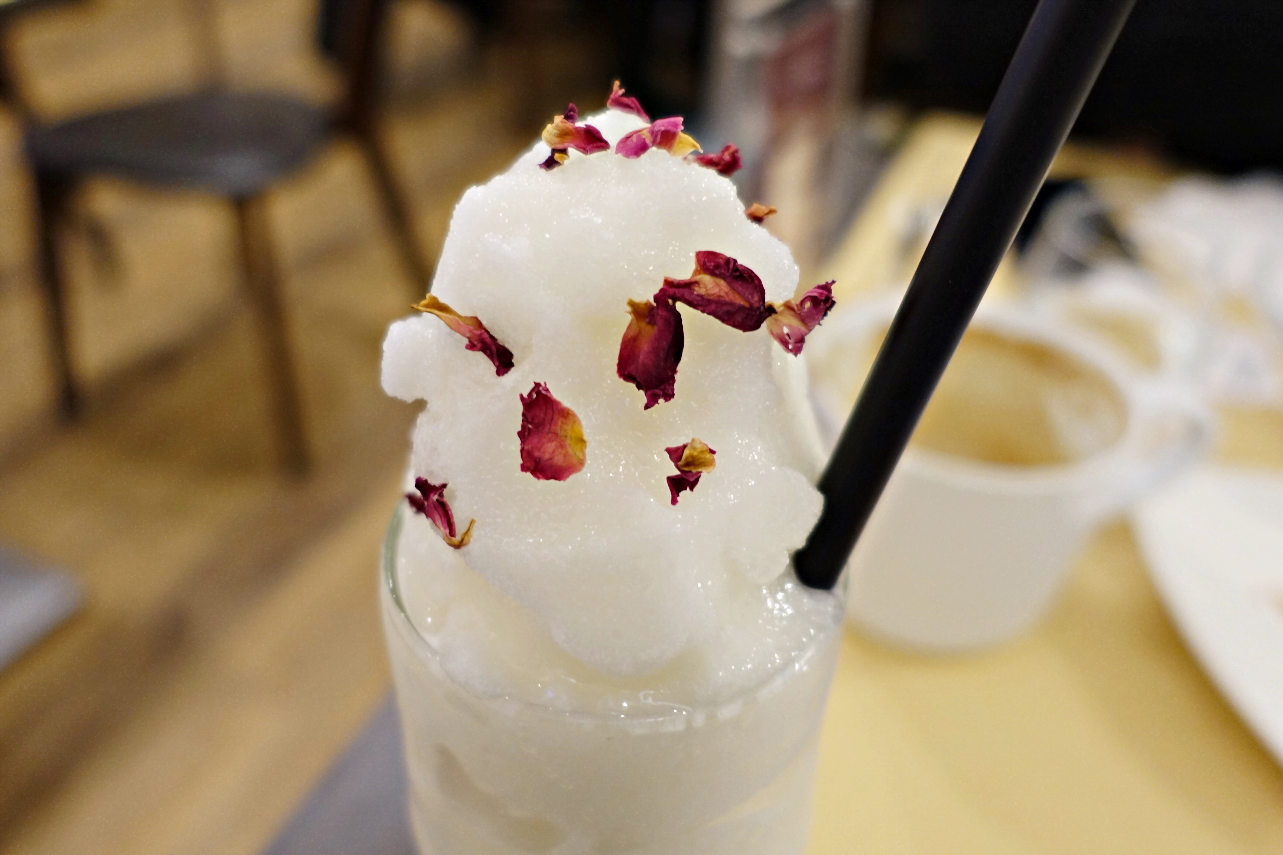 沒什麼記憶點,淡淡的荔枝味搭配可爾必思味,可能適合夏天點,冰冰涼涼的很消暑,但在這微寒的天氣中,有點引不起我的興趣,焦點完全放在甜點上XD。
