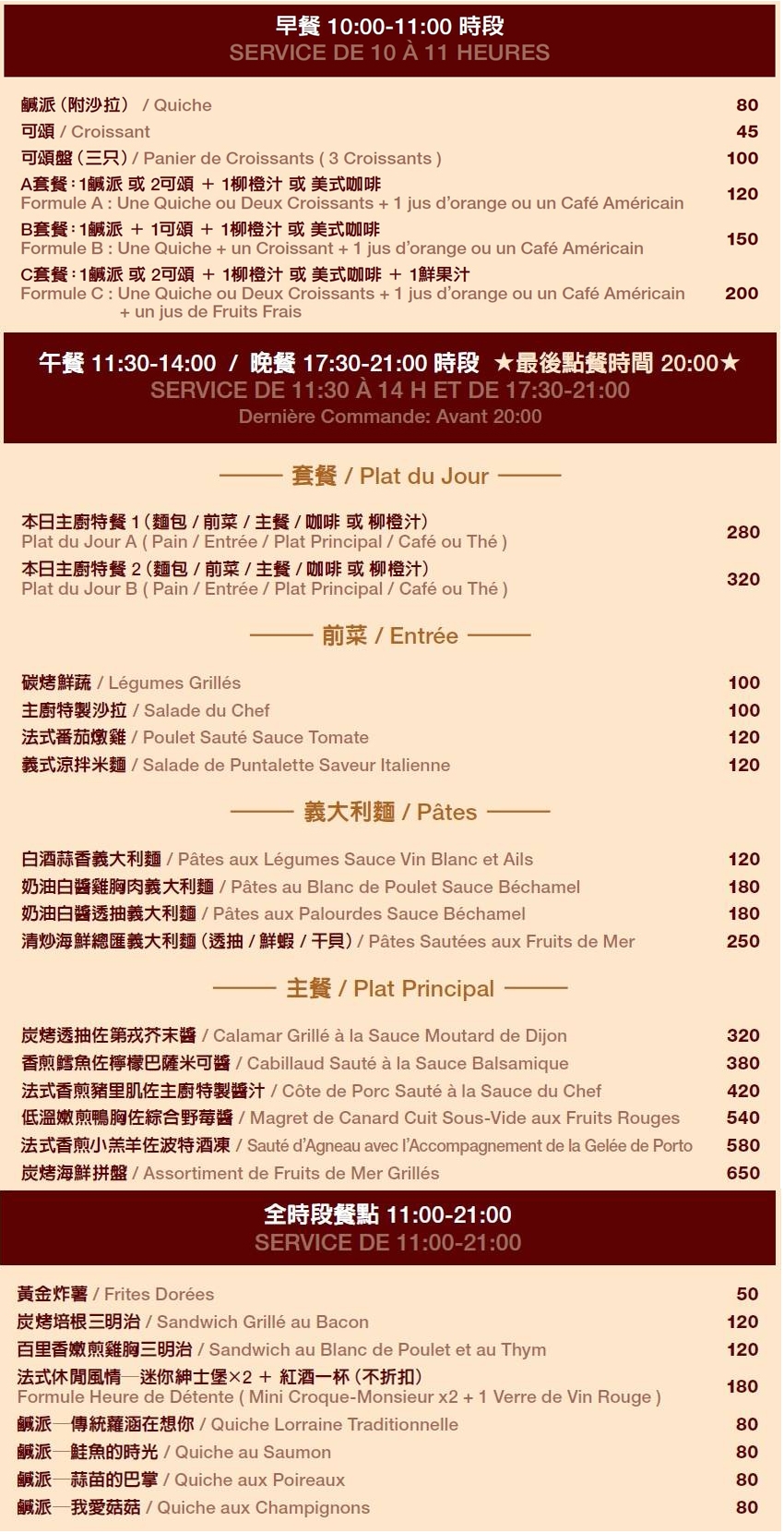法語人之家部分餐點有分時段,而甜點、飲品與下午茶套餐則不分時段都有。