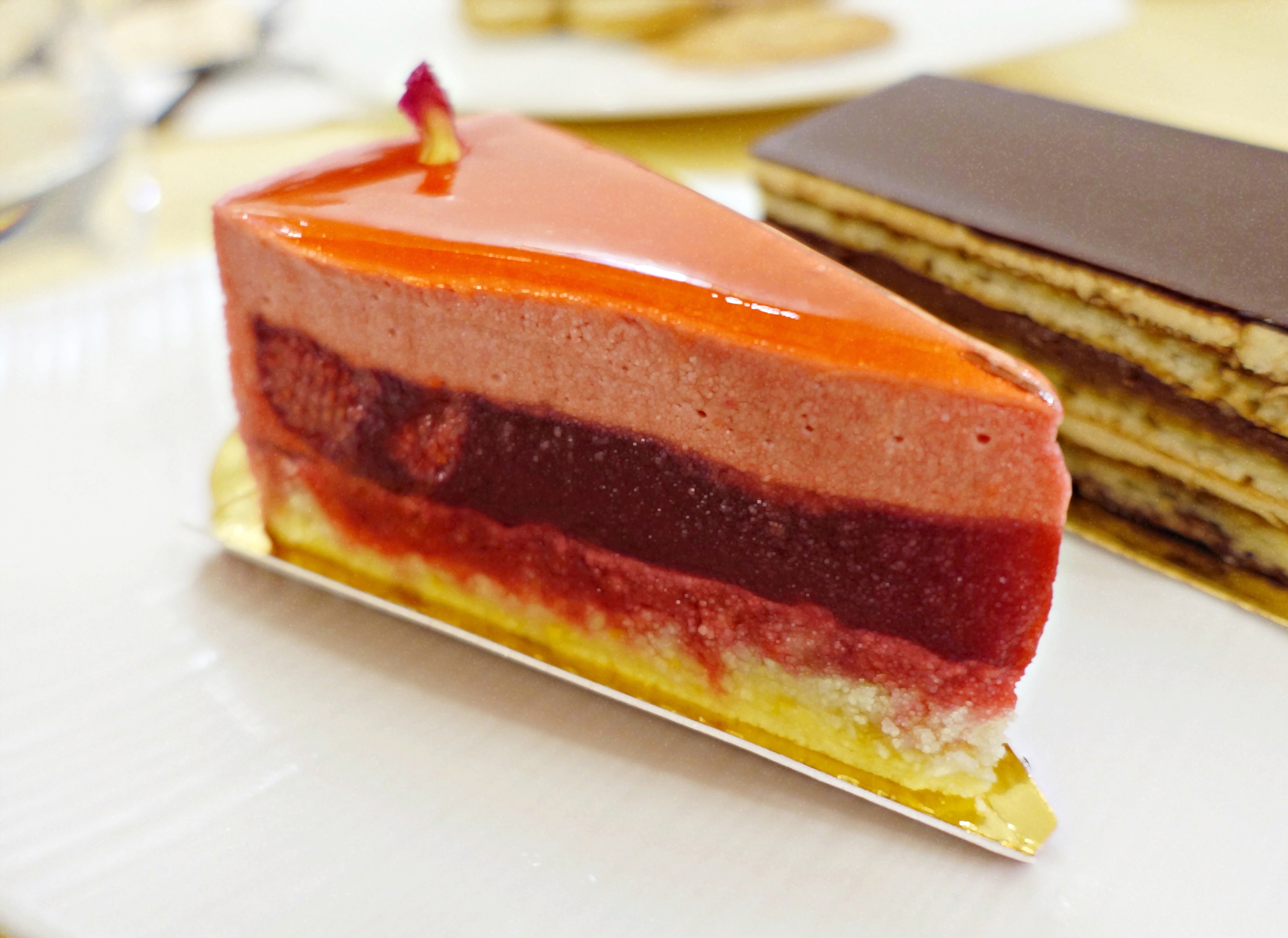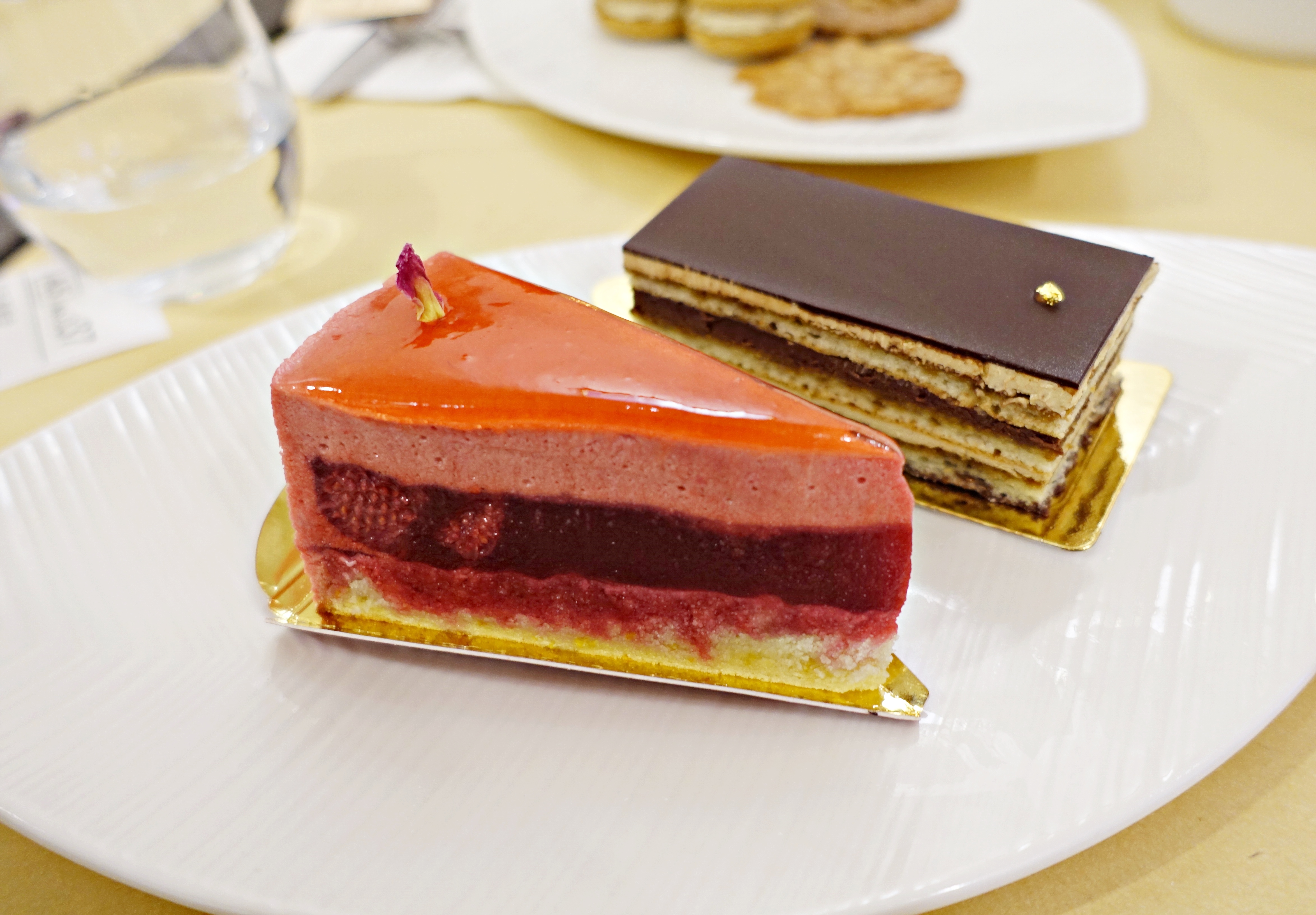 相對於朋友們對歌劇院的喜愛,我個人則是比較喜歡愛蓮,店員介紹時說到愛蓮分為四層,由鏡面果膠、覆盆莓慕斯、覆盆莓果醬果泥與橙皮海綿蛋糕所組成。