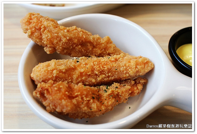 骰子雞肉口感偏綿嫩做成骰子狀也很有噱頭,雞柳同樣是我的最愛,搭配黃芥末蠻好吃的