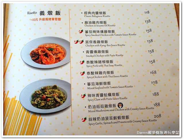餐廳內還有筆管麵,喜歡吃飯的朋友也有義式燉飯,燉飯看圖片也很誘人再訪再來點囉
