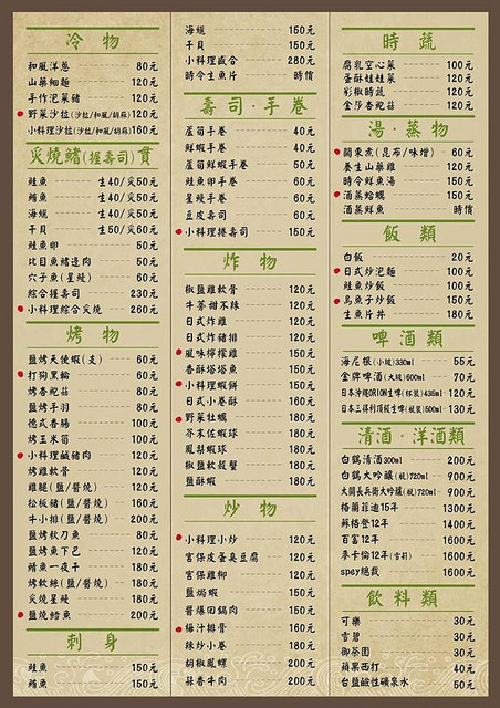 小料理是以居酒屋的型態,裡頭有生魚片、炙燒料理、烤物、炸物等,餐點來說有一定水平囉
