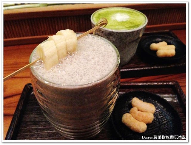 同樣在飲料的部份我也是想了好久要點什麼,因為我喜歡香蕉芝麻牛奶又不忍放棄抹茶