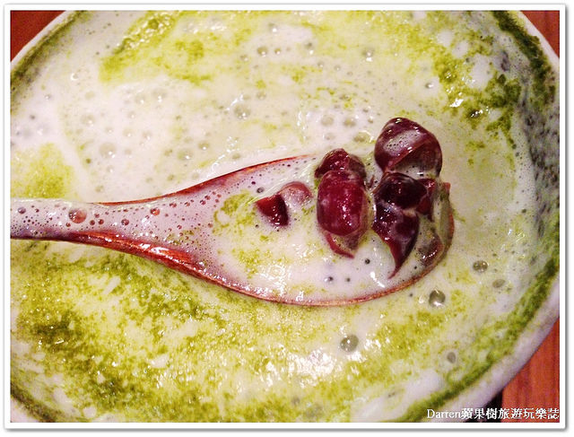 底下有紅豆配料,不過個人覺得有點多餘的感覺,光喝抹茶歐蕾其實就很OK了!!!哈哈