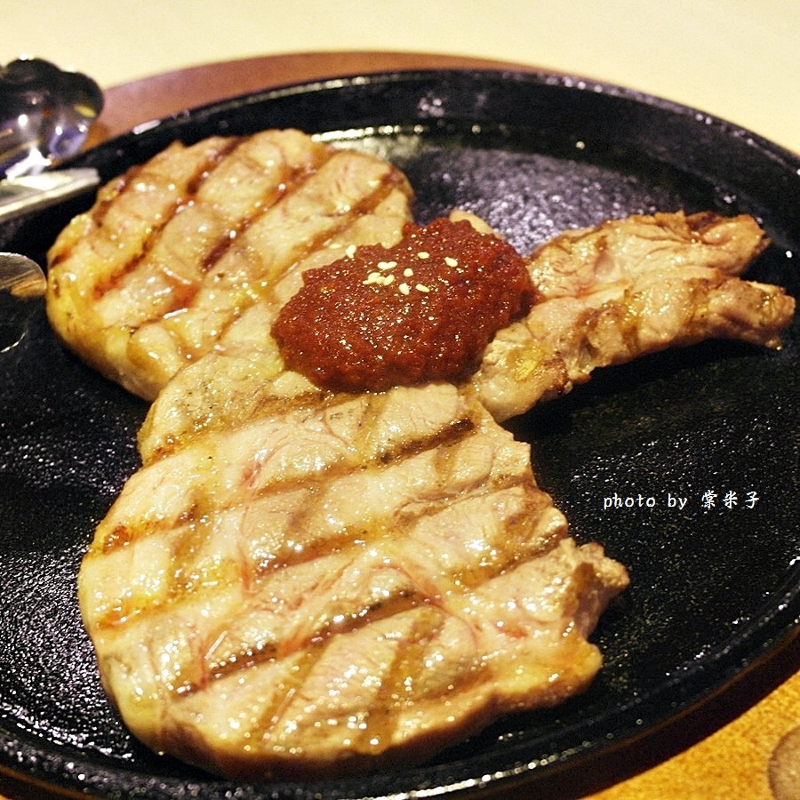 而大盎司的豬排因烤過將肉汁鎖住了,