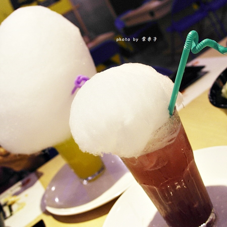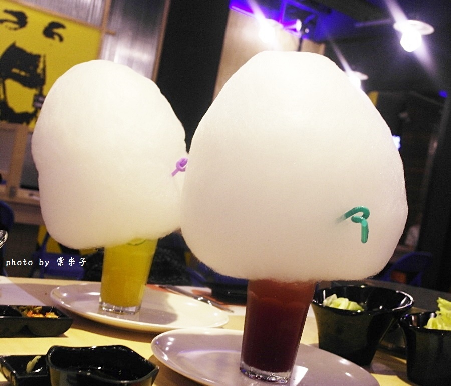 店裡的棉花糖泡泡引搭配的都是略帶微酸味的水果氣泡飲,